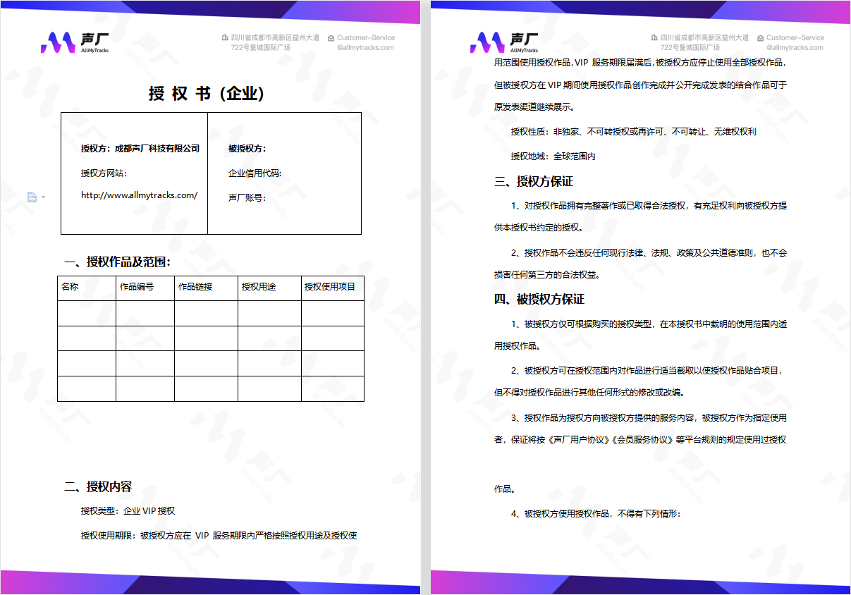| 授权书主体 | 单个自然人 | 单个公司 如果需要授权更多公司,请 联系客服 | 可定制 | ||