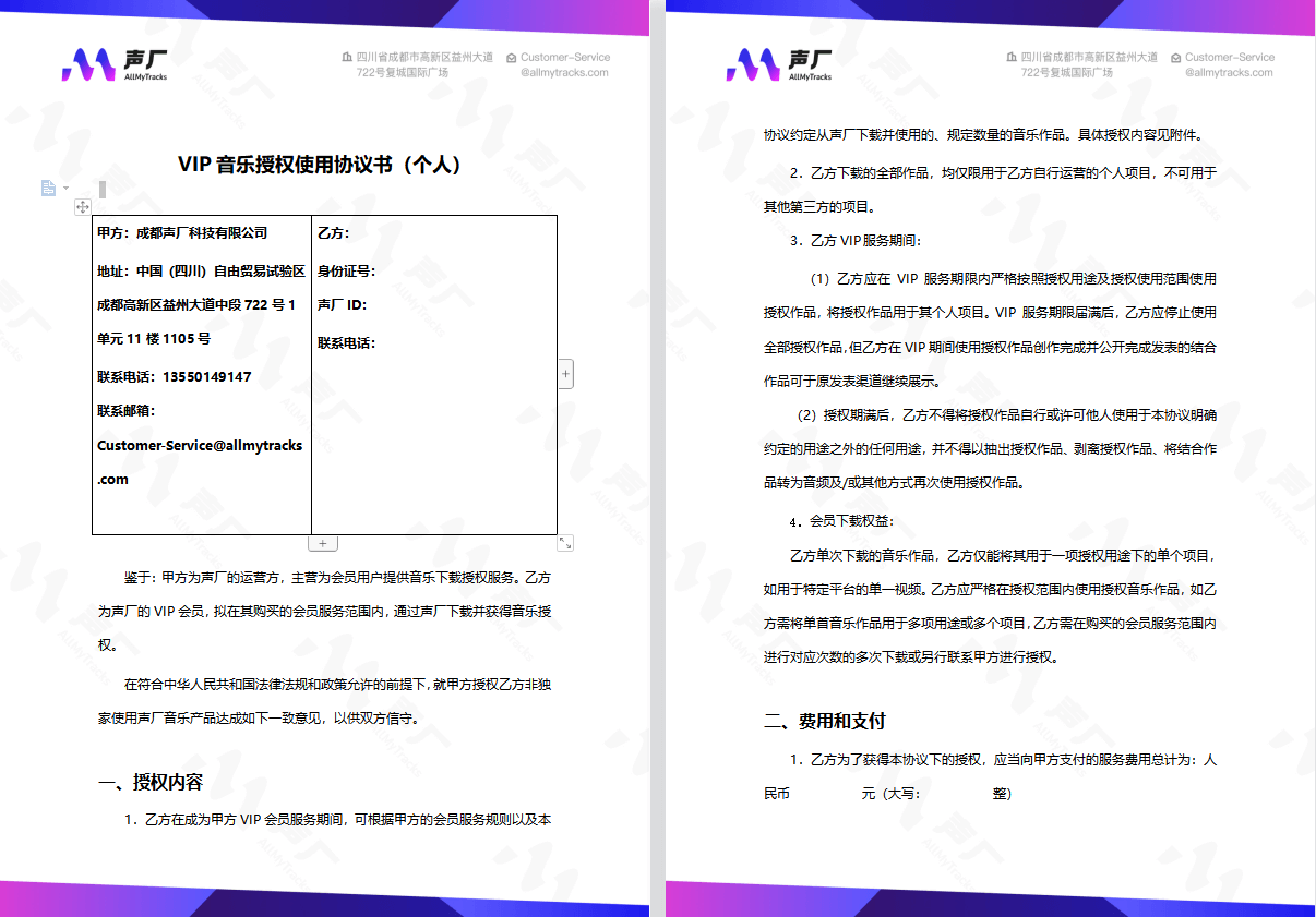 | 声厂会员权益 | 下载权益 | 30首/天 | 50首/天 | 可定制 | |
